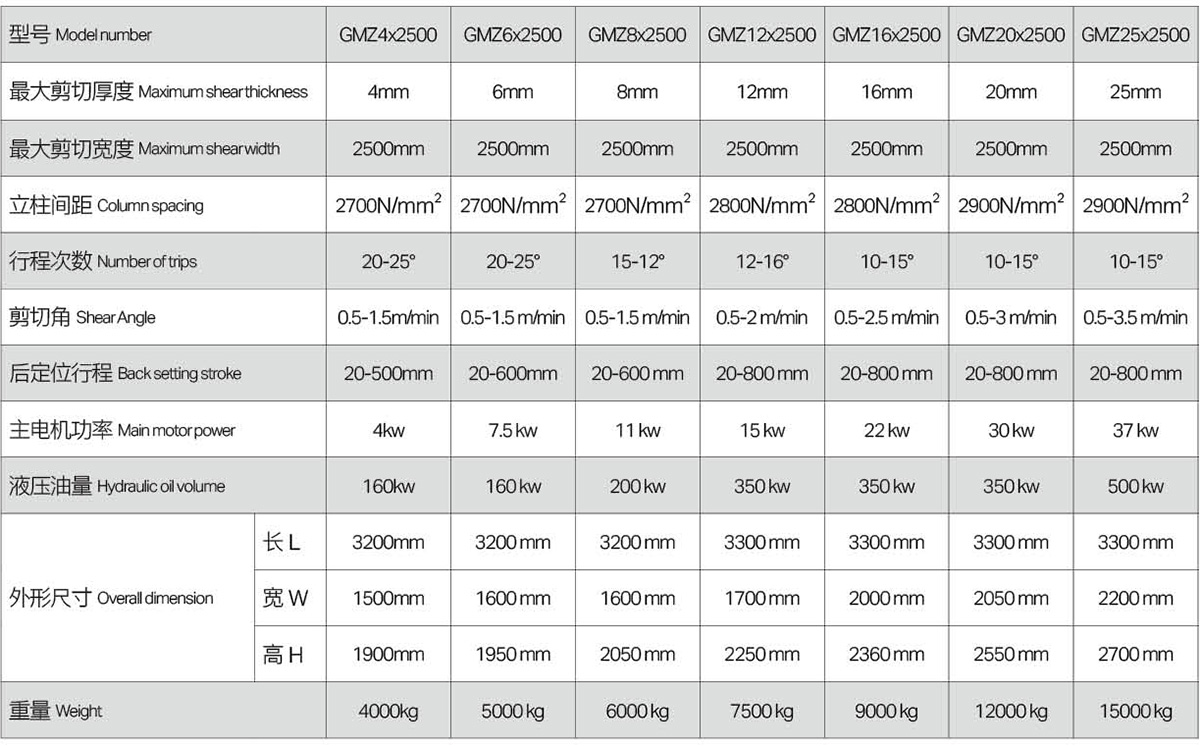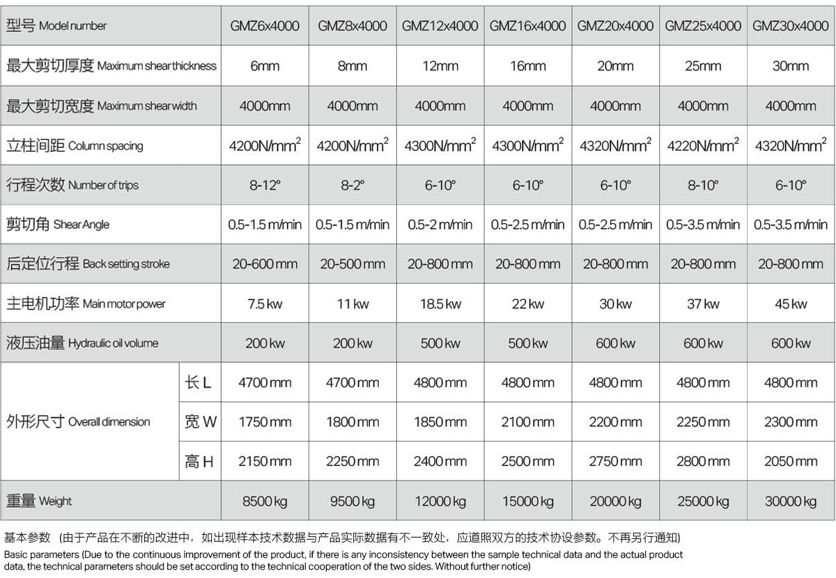 GMZ系列采用全鋼焊結構,振動消除內應力,剛性好;采用三點支撐滾動導軌,消除支撐間隙,提高剪切質量;刀片間隙,自動調整,迅速準確方便;配E22數控裝置;配國內名牌液壓集成系統。